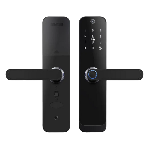 Su diseño incluye mirilla integrada para mayor seguridad, evitando la apertura no autorizada y brindando tranquilidad en hogares y oficinas. Fabricada con materiales duraderos, combina tecnología, seguridad y estética moderna.
